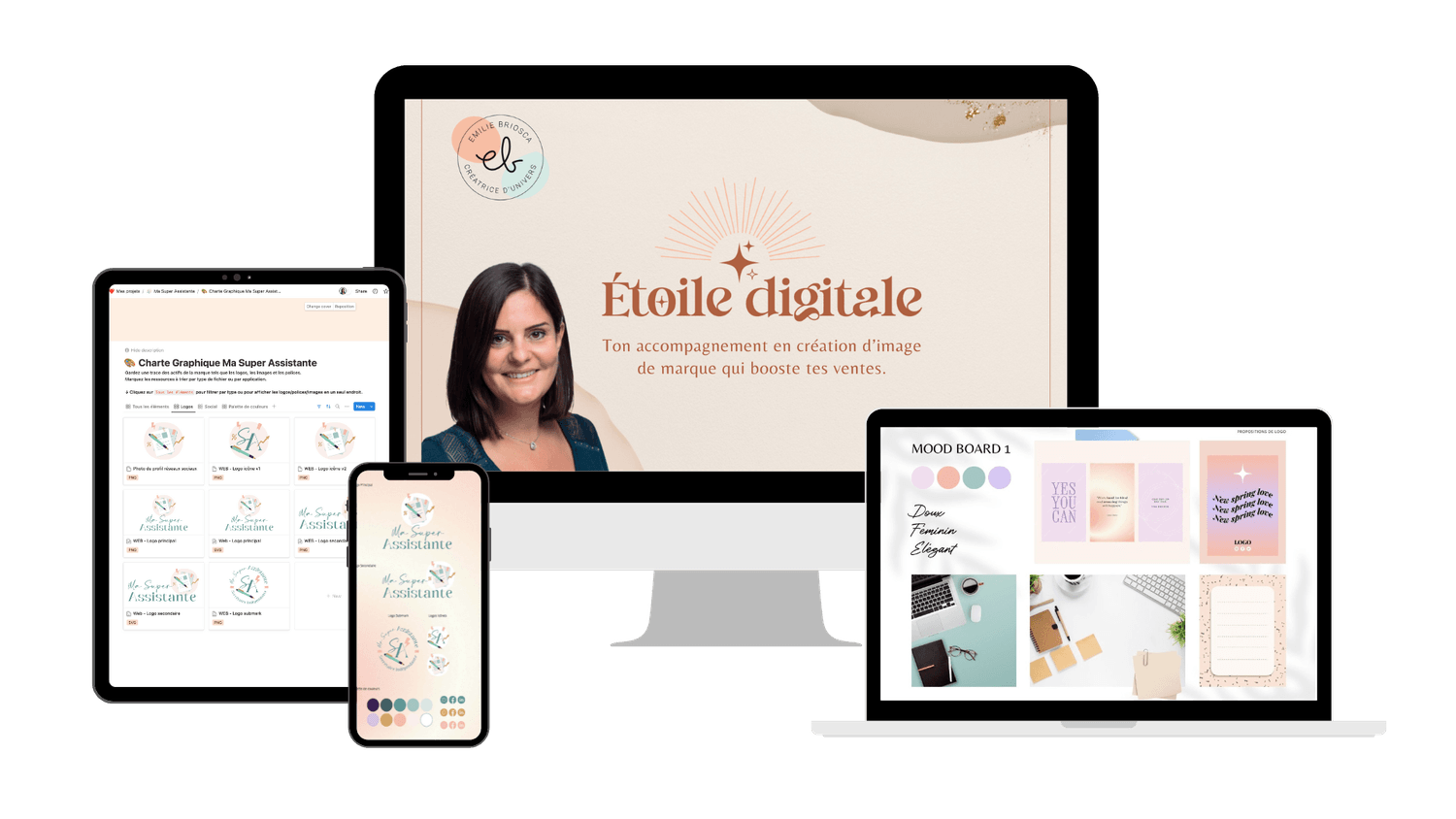 Je propose plusieurs formules d'Etoile Digitale, selon la formule choisie tu recevras à chaque fois les éléments graphiques et le droit d'auteur de ton univers de marque :